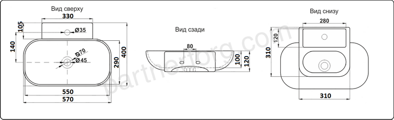 Вид раковины: