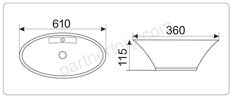 CeramaLux 9398 раковина настольная овальная с отверстием под смеситель, без перелива