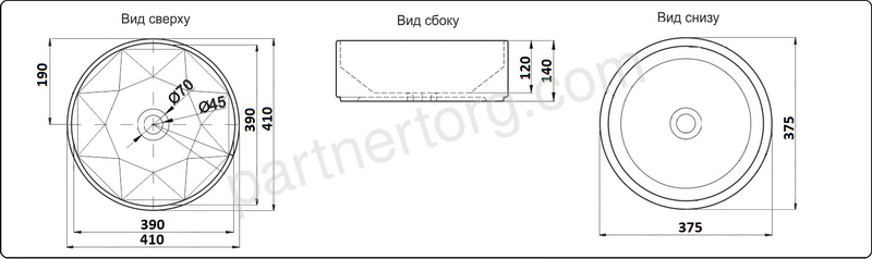 CeramaLux 9425 раковина настольная круглая без отверстия под смеситель, без перелива