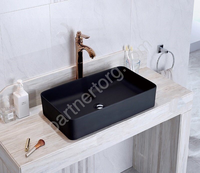 Главная Каталог магазина Сантехника Раковины/Умывальники CeramaLux NC 9396MB раковина настольная прямоугольная черная матовая