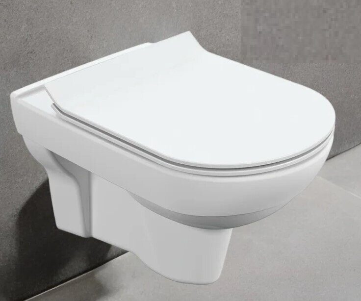 унитаз настенный подвесной керамический безободковый; сиденье для унитаза из дюропласта ультратонкая легкосъемная с функцией плавного закрывания; инструкция/гарантийный талон