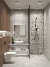 У нас можно подобрать всю необходимую сантехнику, мебель для ванных комнат, напольные покрытия, межкомнатные двери...