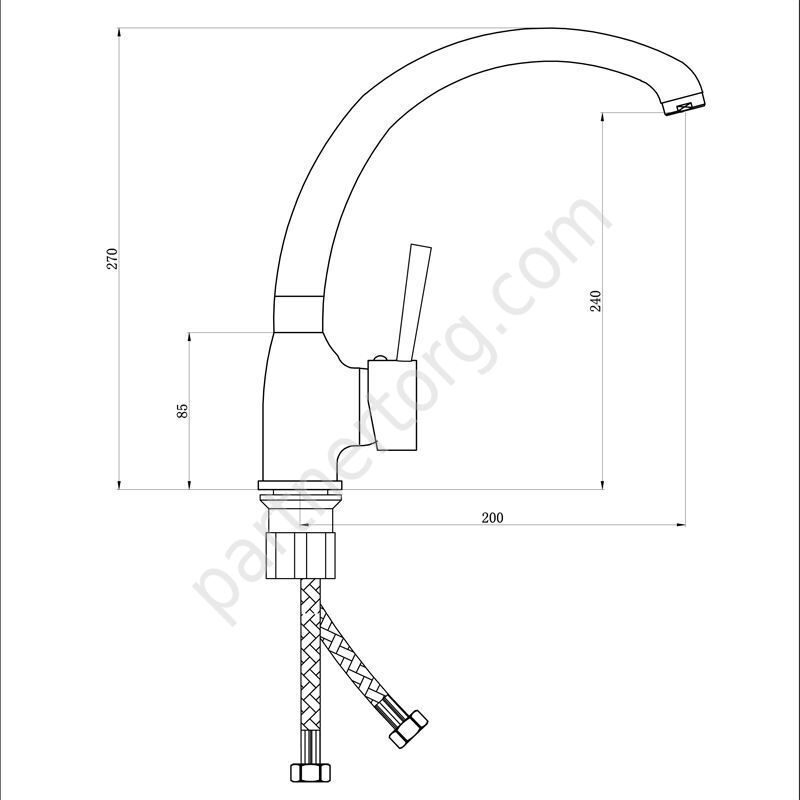 Материал: Латунь. Покрытие: никель-хромовое; Цвет: хром; Излив: высокий. Гибкая подводка: Нетоксичный каучук. Длина излива, мм: 360