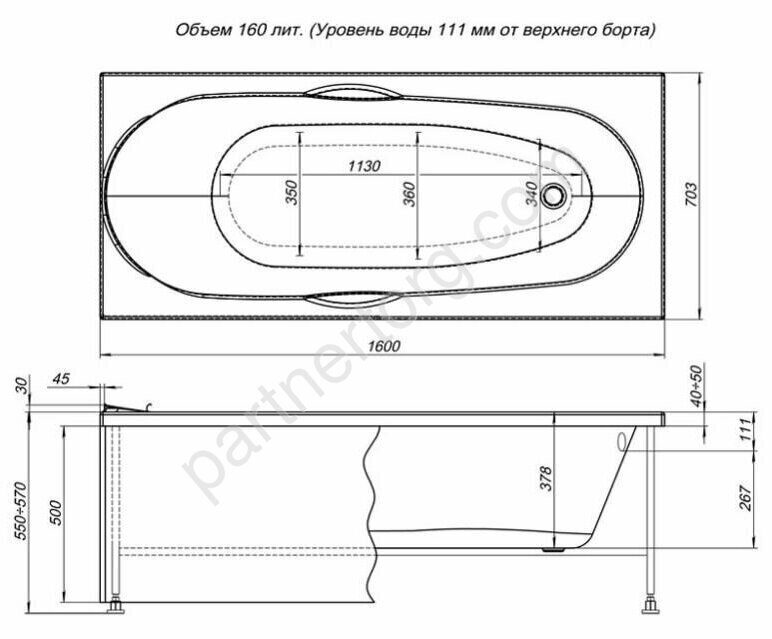 Размер: 160х70см. Объем: 160 л. Цвет: белый.