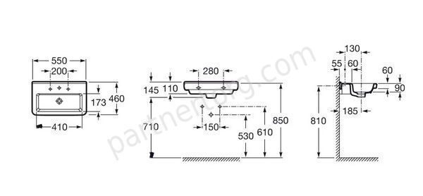 Размер: 55х46х14.5 см. Белый. Устанавливается на болтах/кронштейнах, с пьедесталом или полупьедесталом.
