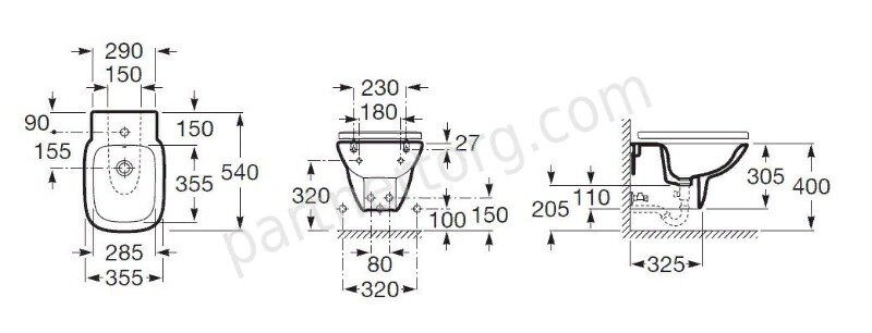 Размер: 30,5х35,5х54 см. Подвесное. Белый. Горизонтальный. Сиденье приобретается отдельно.