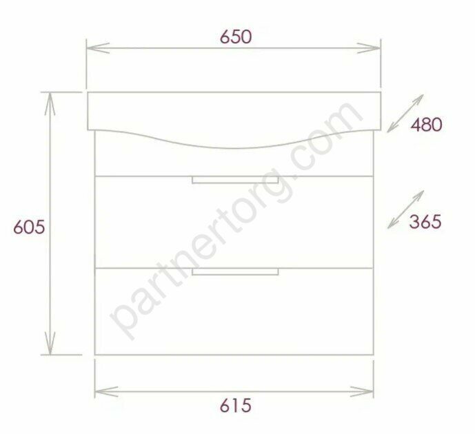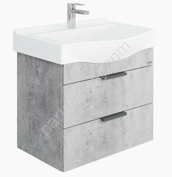 Размер: 60,5х65х48см. Корпус и фасад Влагостойкий ЛДСП цвет Бетон Чикаго. Способ монтажа: подвесная. Конструкция: 2 выдвижных ящика. Фурнитура – Boyard (с доводчиком). Раковина Беверли-65 (Santek) керамическая в комплекте