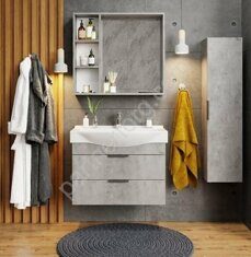 Девис 65.13 Бетон чикаго подвесная тумба для ванной комнаты Onika с умывальником Беверли 65 см
