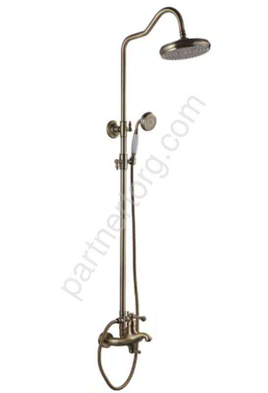 Душевая система Faop A2405-4 в цвете бронза-белый отлично подходит для ретро и классических интерьеров ванных комнат. Модель оснащена тропическим душем, смесителем с фиксированным изливом и ручной лейкой.