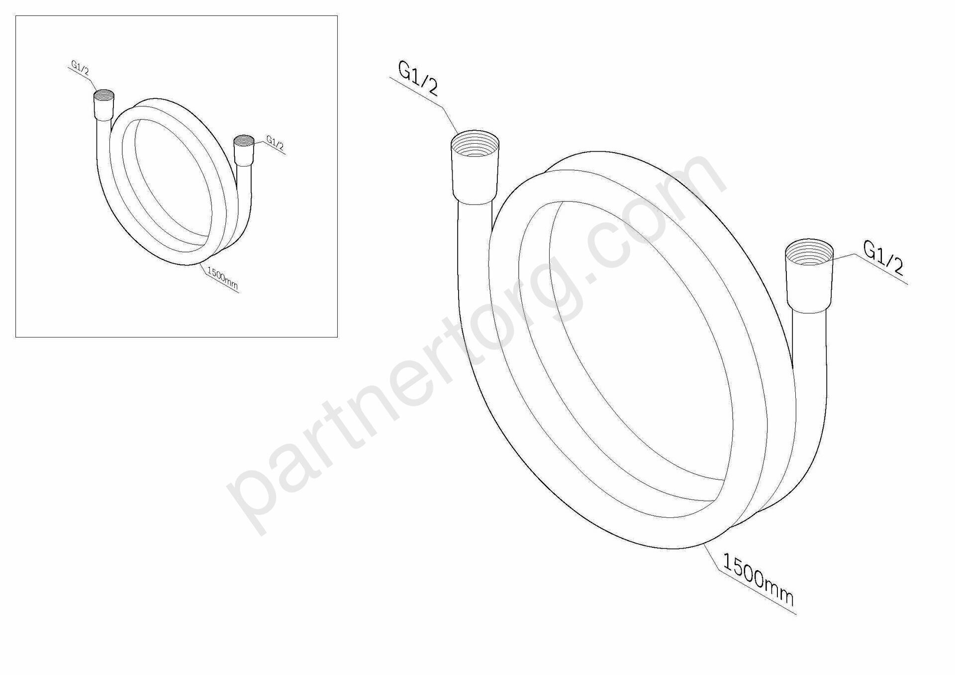 Длина душевого шланга - 1500 мм. Пластик. Цвет - белый. Резьбовое соединение - G1/2.