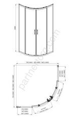 Душевой уголок 1/4 круга, двери раздвижные 1000x1000x2000, профиль черный, стекло прозрачное