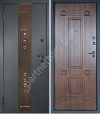 Размеры: 2050х880/960мм. Сталь: 1,5 мм. Основной замок «Гардиан» 3011. Дополнительный замок «Гардиан» 3201. Наполнение: Минеральная плита + пенополистирол. Отделка:Внешняя: Двухслойное полимерное покрытие с МДФ накладкой, цвет медь антик/серебро/венге. Внутренняя: Декоративная МДФ панель с филенчатым рисунком 16 мм: цвет тиковое дерево.Доступен индивидуальный дизайн.