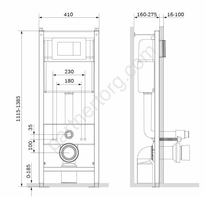 DX00.I011.0151 Инсталляция для подвесного унитаза с клавишей, глянцевый хром