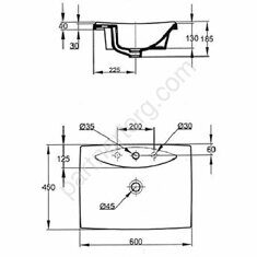 Размер: 60х44,5х17см. Санфарфор. С отверстием под смеситель.