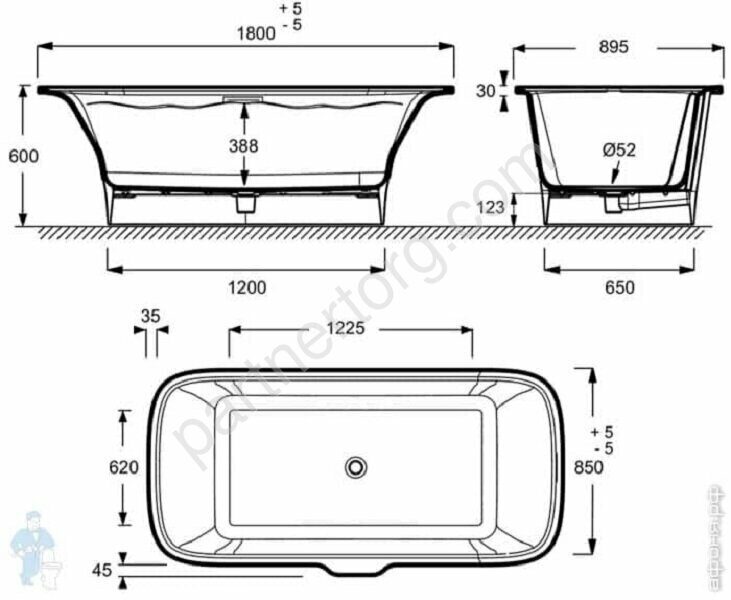Elite ванна отдельно стоящая 180х85см из Flight, слив-перелив в комплекте E6D034-00