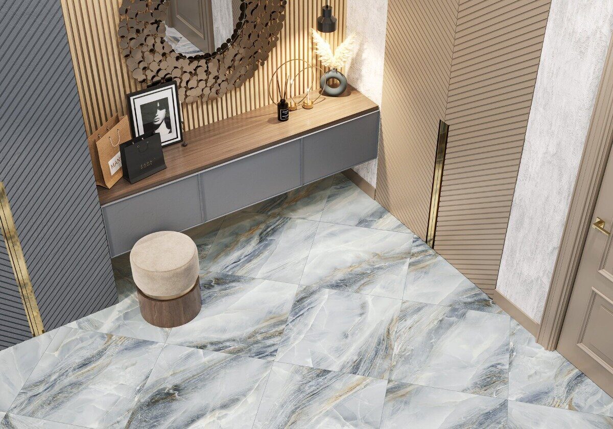 Узор на керамограните Estelle имитирует природный оникс с ярко выраженными трещинами и неоднородной текстурой. Коллекция представлена в кофейно-кремовом и сизо-голубом оттенках с плавными многоцветными градиентами. Эффект объемности достигается за счет разнообразия рисунков и деликатного сияния лаппатированной поверхности, что позволяет формировать уникальные интерьерные решения.
