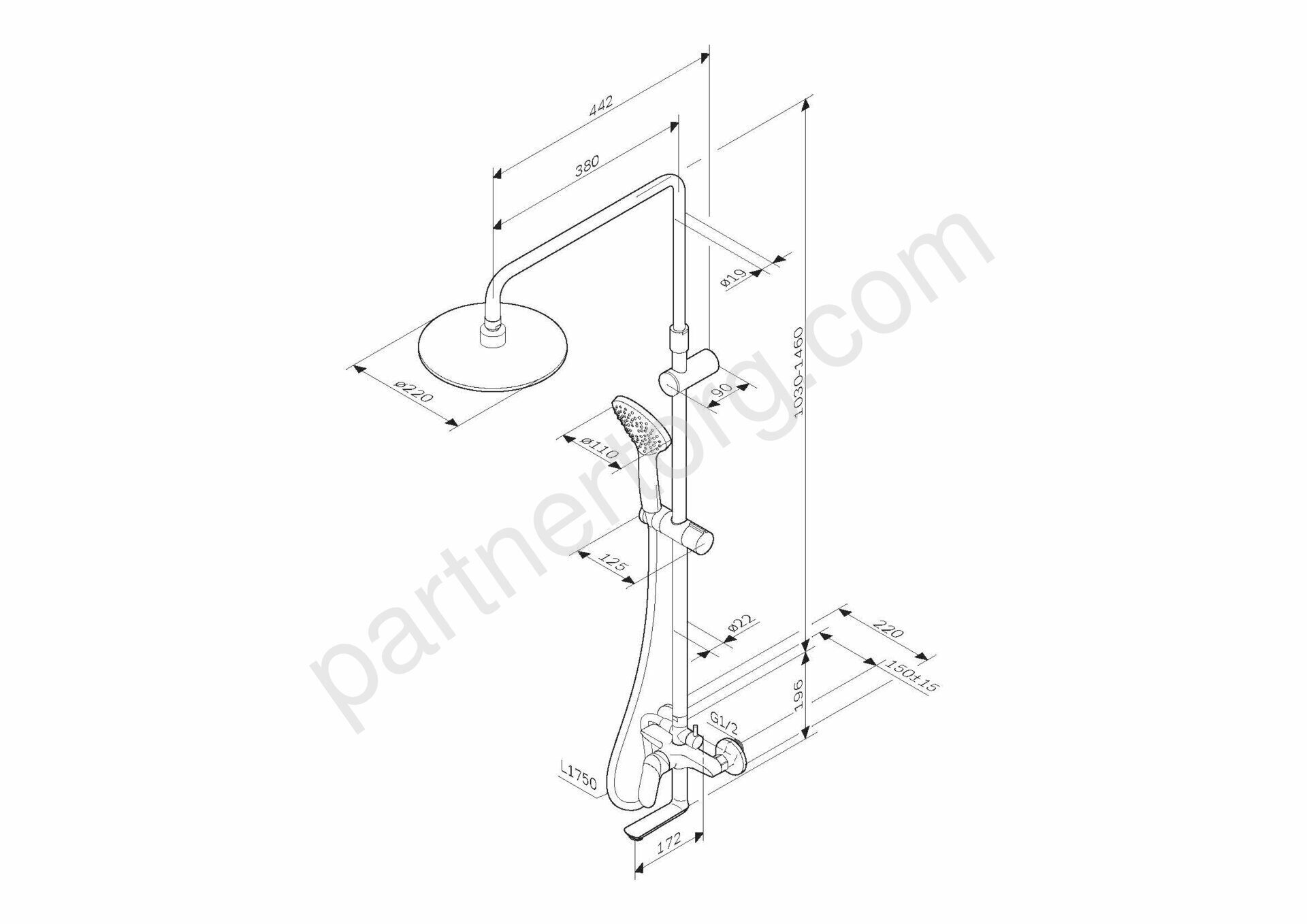 Результат – экономия средств забота об экологии а главное – непередаваемое удовольствие от принятия душа. Диаметр душевых леек (верхний душ 220 мм и ручной душ 110 мм) позволит ощутить преимущества тропического душа даже в стандартной ванной тогда как увеличенная длина шланга 1750 мм обеспечит свободу движений во время принятия душа.