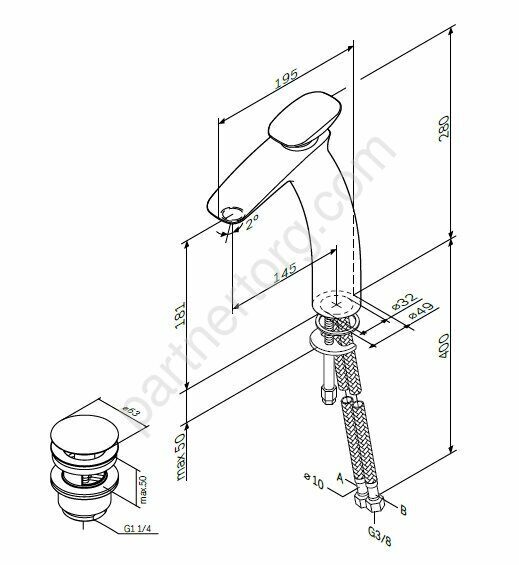 2. Гибкая подводка (смесительная пара): L= 350 мм;