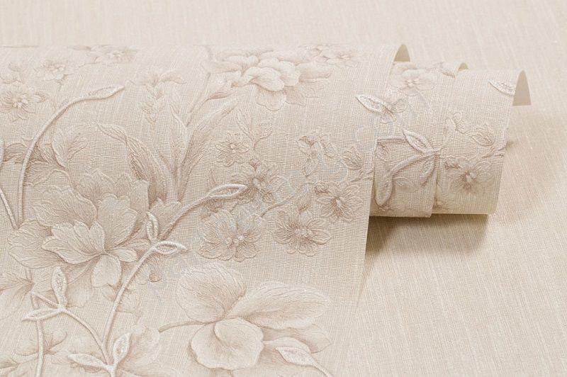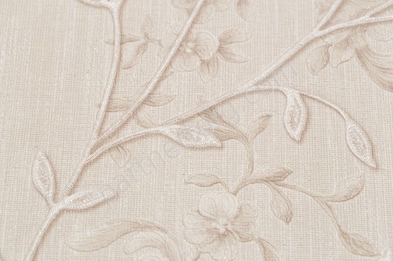 Размер: 1,06х10,05м. Основа: флизелиновая. Способ производства:  Горячее тиснение. Цвет/рисунок: бежевый, Флористика. Раппорт: 64