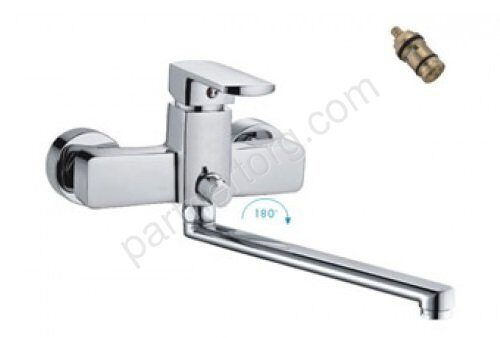 Размер: 38,5х15,6см. Излив поворотный. Цвет: хром. Материал: латунь.  Тип картриджа: Керамический 35 мм. В комплекте: душевой шланг 150 см, душевая лейка, держатель лейки, комплект отражателей, комплект эксцентриков, аэратор