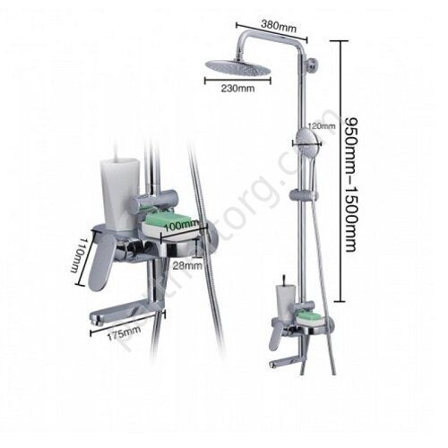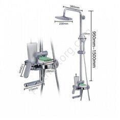 Размеры: max высота 1500 мм. Комплект: душевая лейка с держателем, поворотный переключатель с тропического душа на душевую лейку, душевой шланг. Идеально подходит для установки в душевых углах и кабинах, а так же в ваннах.