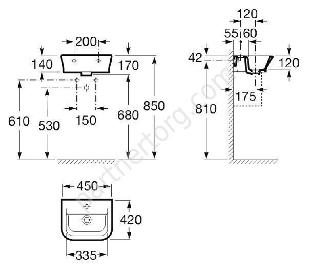Размер: 45х42х17 см. Белый. Устанавливается на болтах/кронштейнах на пьедестал или полупьедестал.