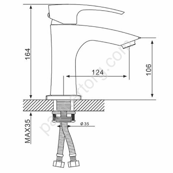 Излив: короткий, каскадный (в виде полуоткрытого желоба)
