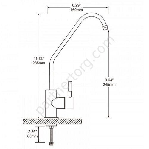 Размер: 16,0х24,5см. Цвет: сталь. Материал: латунь. Излив: высокий, поворотный, средний. Управление: моно. Тип картриджа: Керамическая кран-букса. Со встроенным фильтром.