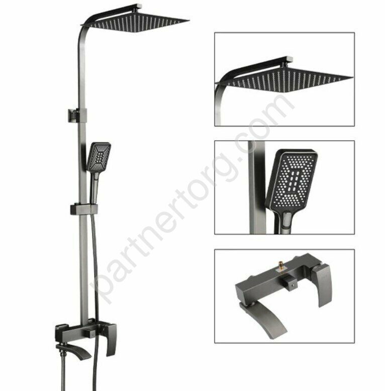 Главная Каталог магазина Сантехника Смесители Gappo G2407-9 стойка с тропическим душем и смесителем Оружейная сталь