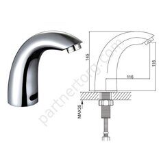 Размер: 11,6х11,6см. Цвет: хром. Материал: латунь. Управление: сенсорные. Излив: стационарный, короткий, низкий. С аэратором.