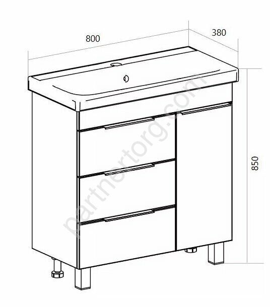 ВНИМАНИЕ! к тумбе подходит только вид сифона "компакт" (или наша номенклатура Сифон для раковин 1 Marka) из-за определенной модификации ящика.