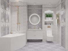 У нас можно подобрать всю необходимую сантехнику, мебель для ванных комнат, напольные покрытия, межкомнатные двери...