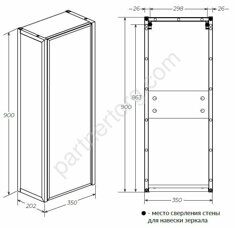 Ширина 35см. Высота 90см. Глубина 20см