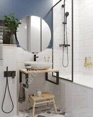 Стильное решение в стиле "Loft" для современной ванной комнаты.  Отличная, современная модель. подходит для установки большинства настольных раковин. Смеситель может быть врезан в столешницу тумбы или установлен настенный для раковины.