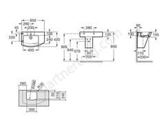 Размер: 65х42х14,5 см. Белый. Устанавливается на болтах/кронштейнах, с пьедесталом или полупьедесталом либо на поверхность. Правая