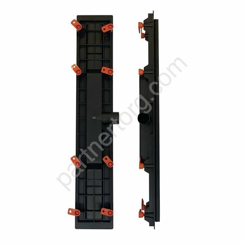 Ширина 63 см. Длина  75 см. Монтажная высота 65 см. Комплектация: лоток, решетка.  Цвет черный матовый.  Материал рамы металл, пластик.  Материал (дополнительно)  нержавеющая сталь. Макс. пропускная способность  38 л/мин