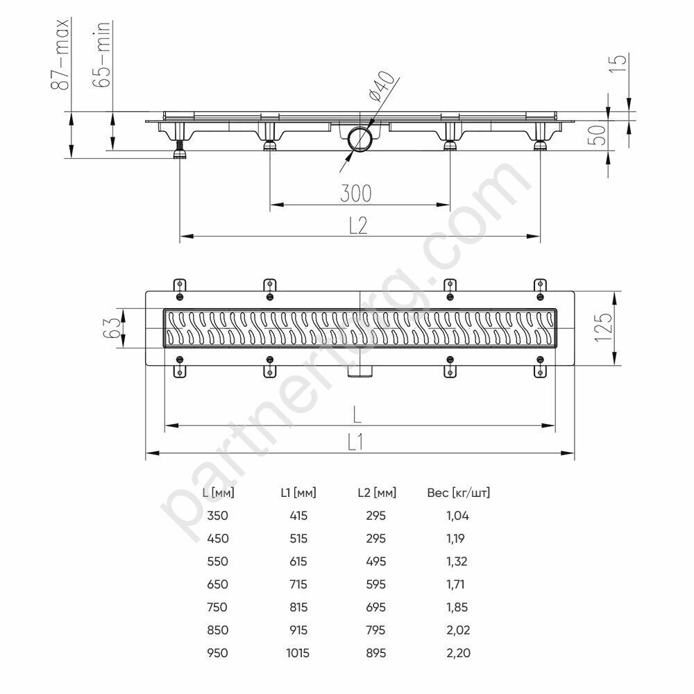 Комплектация: лоток, решетка