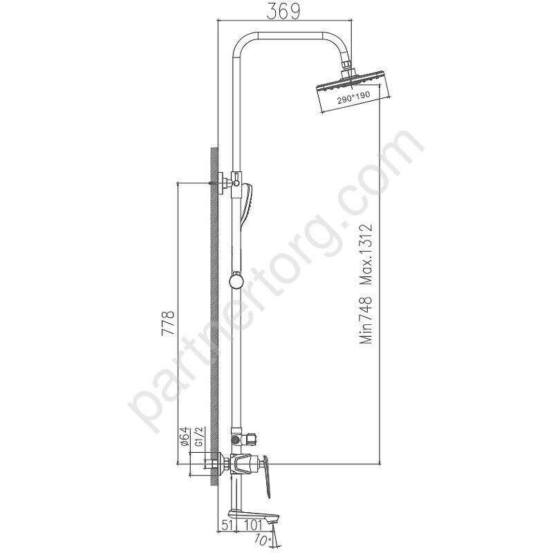 Размер верхнего душа: 19х29 см.