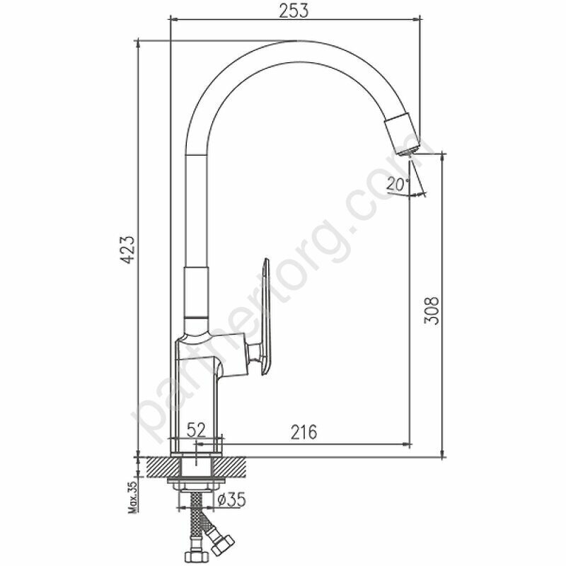 Изделие  оснащено гибким изливом, что делает его использование максимально удобным, так же  имеет устойчивое покрытие, которое защитит сантехнику от воздействия агрессивных моющих средств.