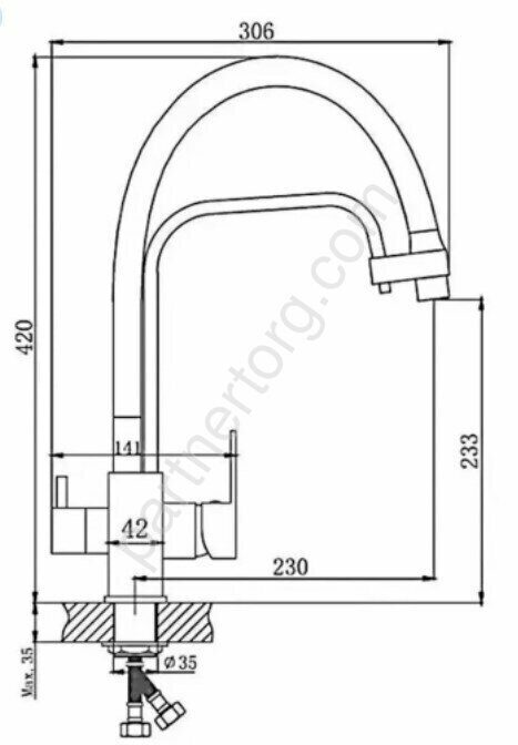 Этот смеситель можно одновременно подключить к водопроводной воде и к фильтру с питьевой водой.