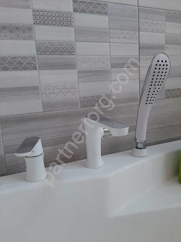 HB80804 смеситель врезной на борт ванны 3 отверстия белый Haiba