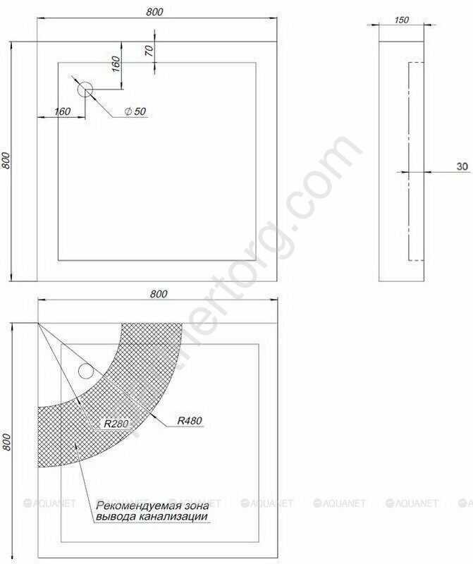 Размер, см: 80х80. Толщина поддонов: 15см. Материал: акрил. С антискользящим покрытием. С переливом.