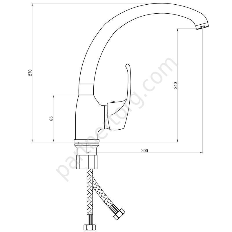 Материал: Латунь. Покрытие: никель-хромовое; Цвет: хром; Излив: высокий. Гибкая подводка: Нетоксичный каучук. Длина излива, мм: 360