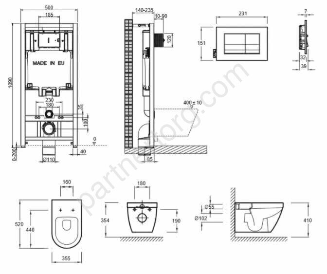 Инсталляция (монтажная рама, панель смыва хром)