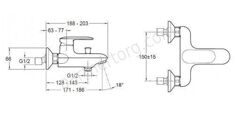 Смеситель для ванны. Однорычажный. Керамический картридж. Корпус из латуни. С аэратором. Без лейки.