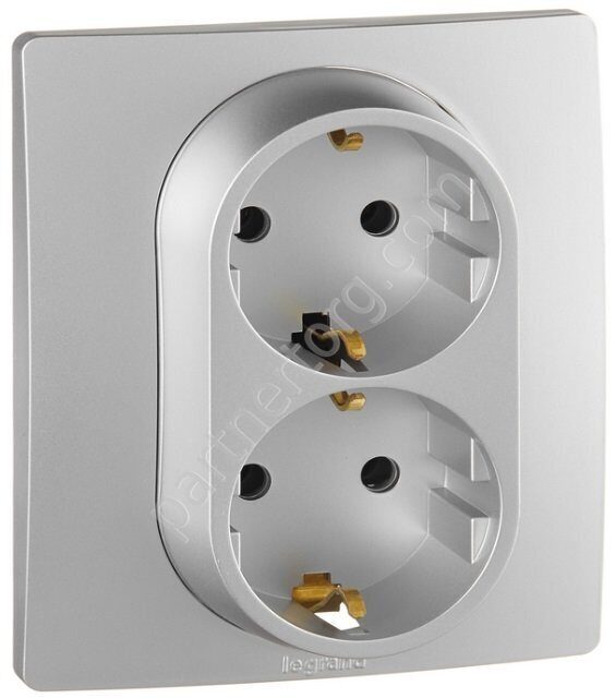 Legrand Etika cиловая розетка двойная 2x2К+З 16А 250В, винтовые зажимы, цвет алюминий