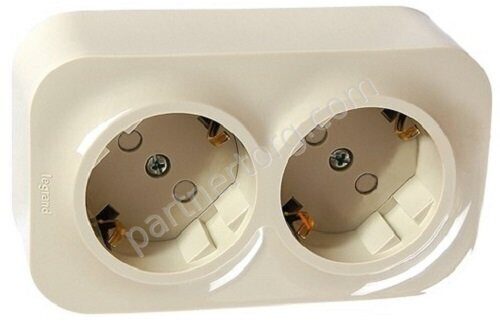 Legrand Quteo cиловая розетка двойная 2x2К+З 16А 250В, со шторками, цвет слоновая кость