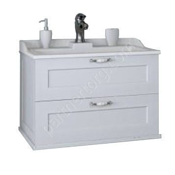 Коллекция Леон создана специально для любителей классического дизайна, предпочитающих современные материалы. Мебель отделана пленкой с фактурой под натуральное дерево, а раковина, изготовленная из литого мрамора, имеет изящные формы, пристенные бортики и площадки, которые делают ее очень удобной. В тумбе установлены 2 ящика, и помимо стандартного подключения водоснабжения и канализации (из стены) предусмотрена возможность подключения труб снизу.