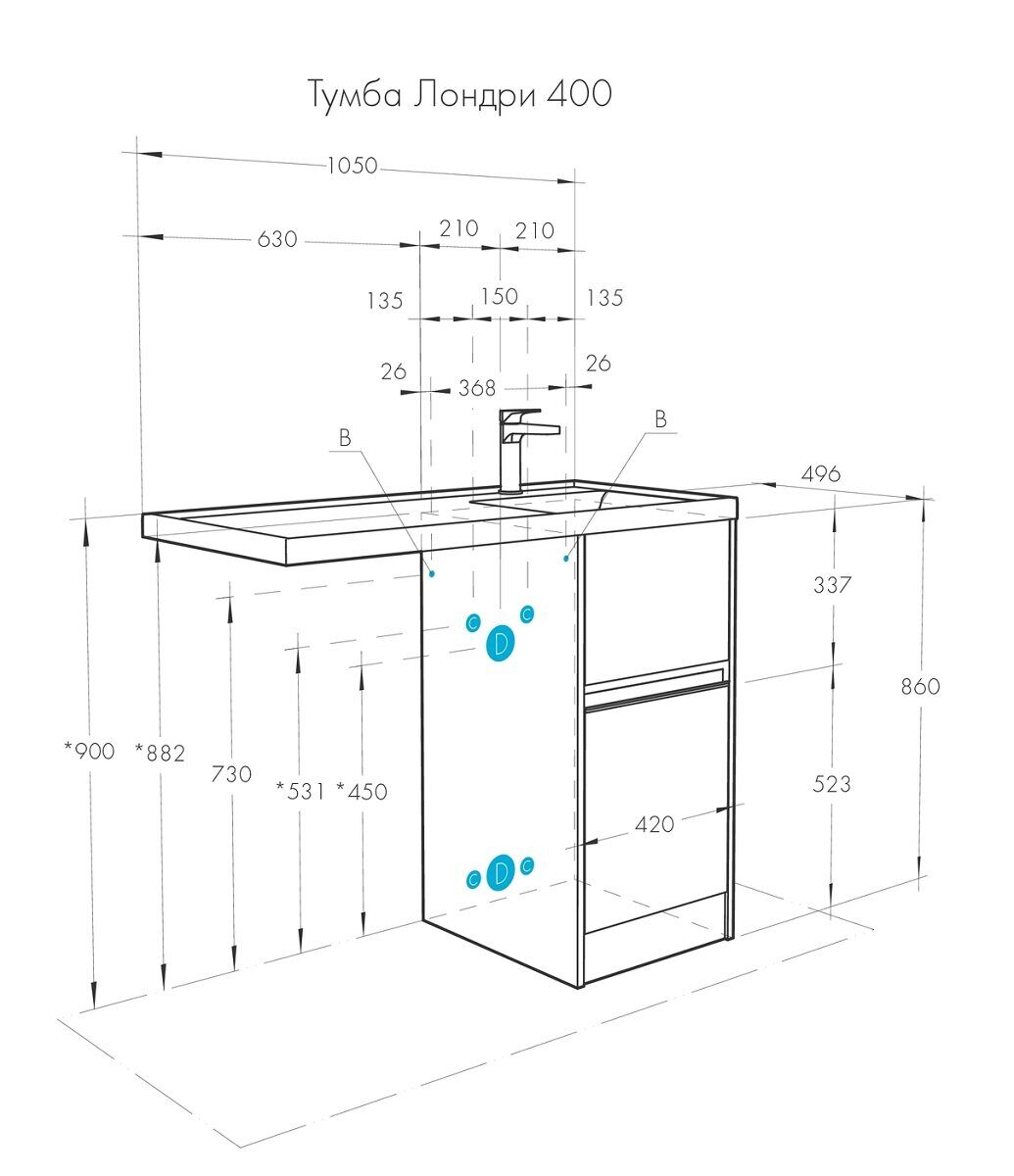 Лондри 40 см тумба под раковину над стиральной машиной с раковиной Лондри 105 правая Aquaton