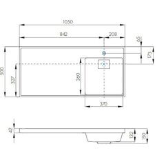 Раковина: длина - 500мм, ширина - 1050мм, высота -150мм